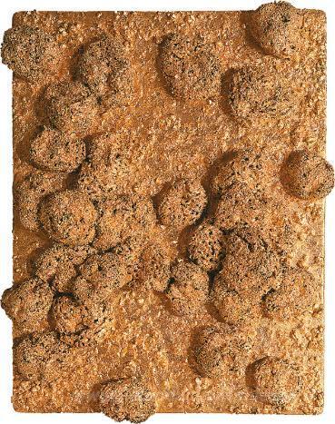 Nous vous proposons une reproduction artisanale sur toile du célèbre tableau 'Boules d'or' de Yves Klein, provenant du Musée de la Reproduction.