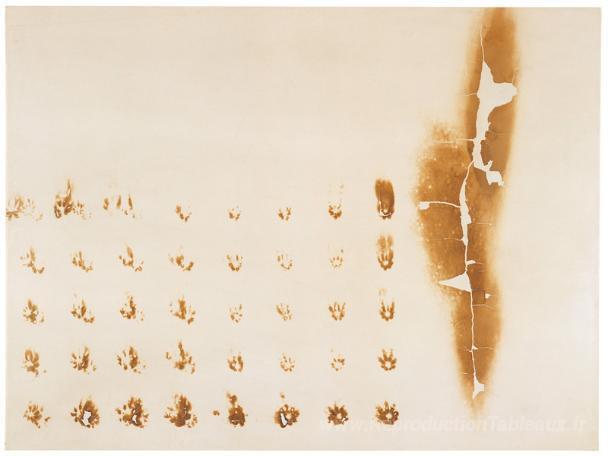 Nous vous proposons une reproduction artisanale sur toile du célèbre tableau 'Peinture de feu sans titre' de Yves Klein, provenant du Musée de la Reproduction.