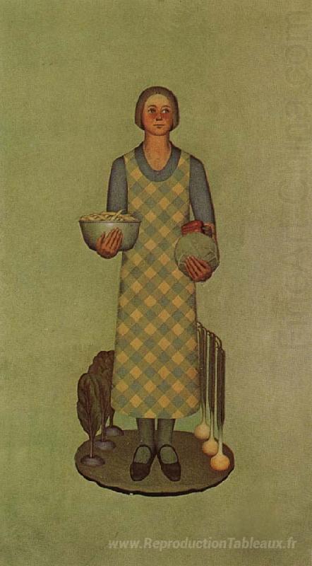 Nous vous proposons une reproduction artisanale sur toile du célèbre tableau 'Le produit de l'Iowa' de Grant Wood, provenant du Musée de la Reproduction.