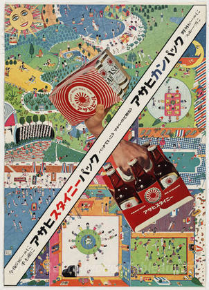 Nous vous proposons une reproduction artisanale sur toile du célèbre tableau 'Bière Asahi' de Tadanori Yokoo, provenant du Musée de la Reproduction.