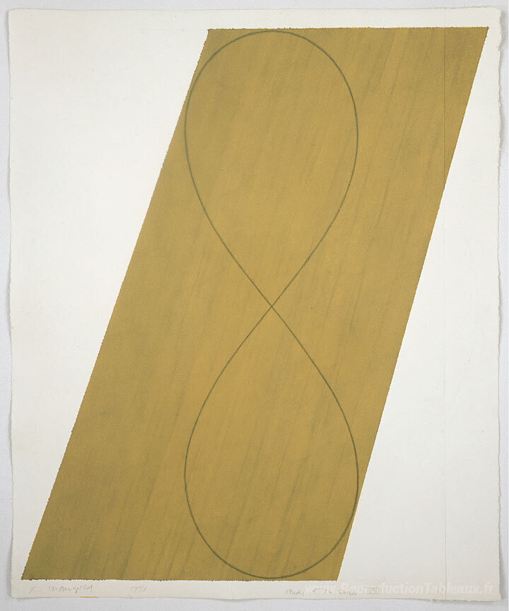Nous vous proposons une reproduction artisanale sur toile du célèbre tableau 'Étude de la série de greniers VIII' de Robert Mangold, provenant du Musée de la Reproduction.