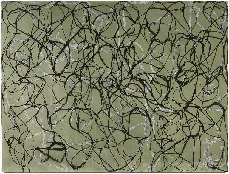 Nous vous proposons une reproduction artisanale sur toile du célèbre tableau 'Étude des ponts' de Brice Marden, provenant du Musée de la Reproduction.