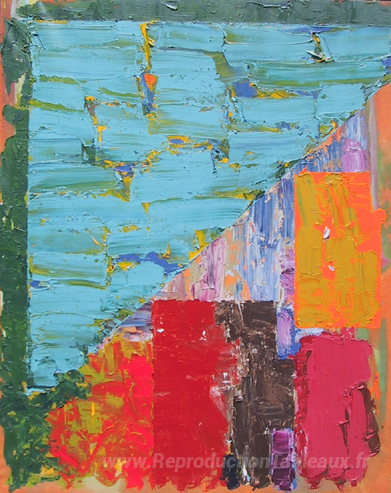 Nous vous proposons une reproduction artisanale sur toile du célèbre tableau '25.4.78' de John Hoyland, provenant du Musée de la Reproduction.