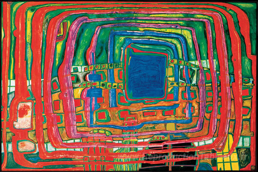 Nous vous proposons une reproduction artisanale sur toile du célèbre tableau '433 le je ne sais toujours pas' de Friedensreich Hundertwasser, provenant du Musée de la Reproduction.