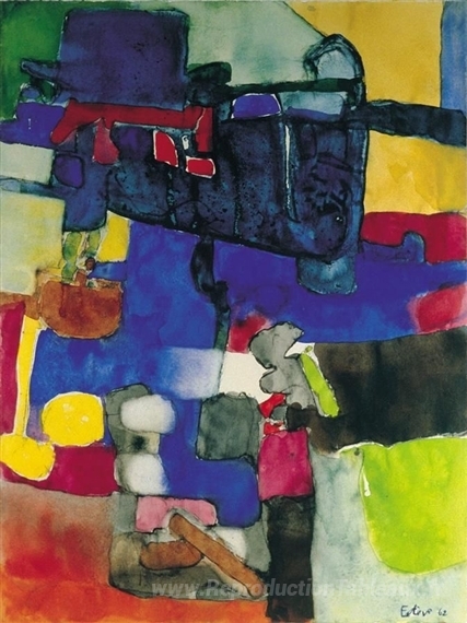 Nous vous proposons une reproduction artisanale sur toile du célèbre tableau '756-A' de Maurice Esteve, provenant du Musée de la Reproduction.