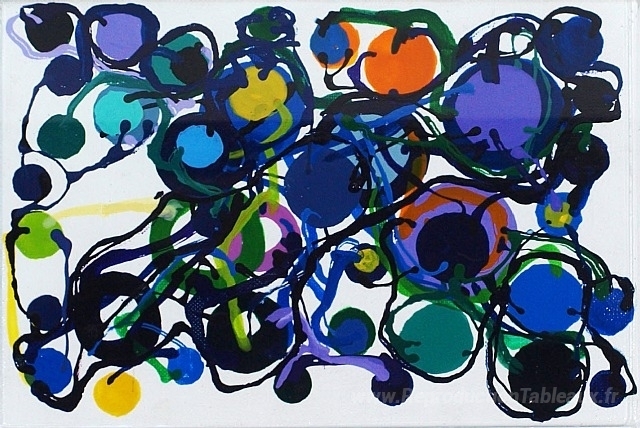 Nous vous proposons une reproduction artisanale sur toile du célèbre tableau '89a' de Atsuko Tanaka, provenant du Musée de la Reproduction.