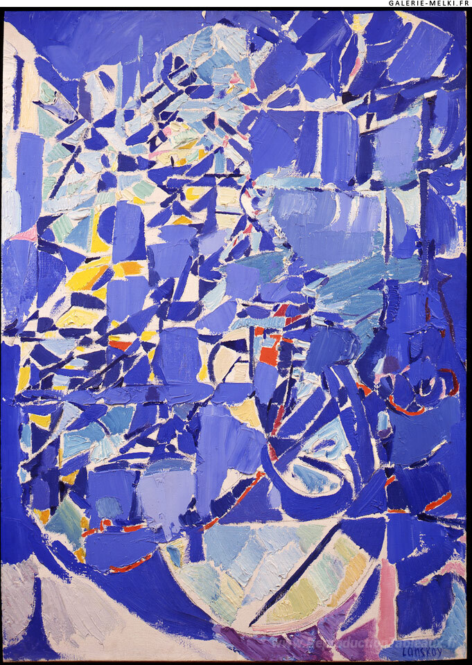 Nous vous proposons une reproduction artisanale sur toile du célèbre tableau 'A l'ombré d'Un Montagne Transparente' de Andre Lanskoy, provenant du Musée de la Reproduction.