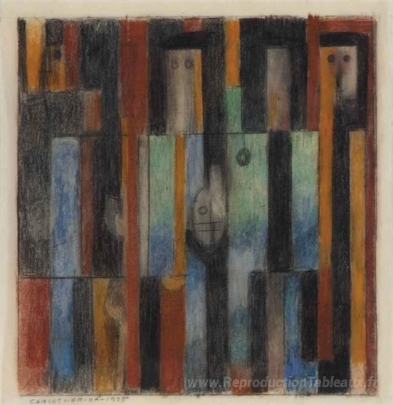 Nous vous proposons une reproduction artisanale sur toile du célèbre tableau 'Abstracta Composición' de Carlos Merida, provenant du Musée de la Reproduction.