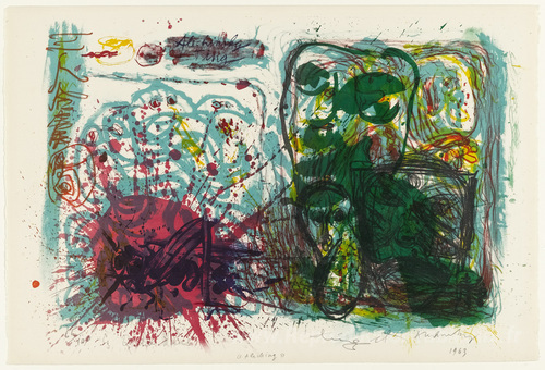 Nous vous proposons une reproduction artisanale sur toile du célèbre tableau 'Aleching' de Pierre Alechinsky, provenant du Musée de la Reproduction.