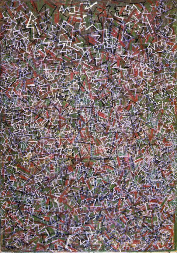 Nous vous proposons une reproduction artisanale sur toile du célèbre tableau 'Aller et venir' de Mark Tobey, provenant du Musée de la Reproduction.