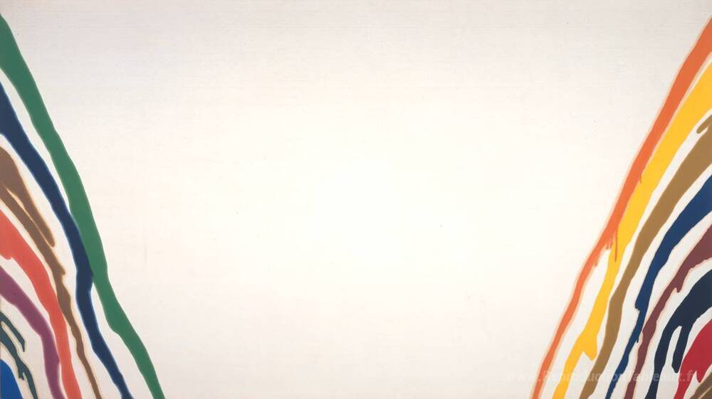 Nous vous proposons une reproduction artisanale sur toile du célèbre tableau 'Alpha-Phi' de Morris Louis, provenant du Musée de la Reproduction.
