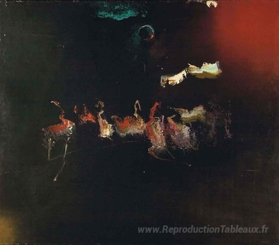 Nous vous proposons une reproduction artisanale sur toile du célèbre tableau 'Alvorada da Industria' de Manabu Mabe, provenant du Musée de la Reproduction.