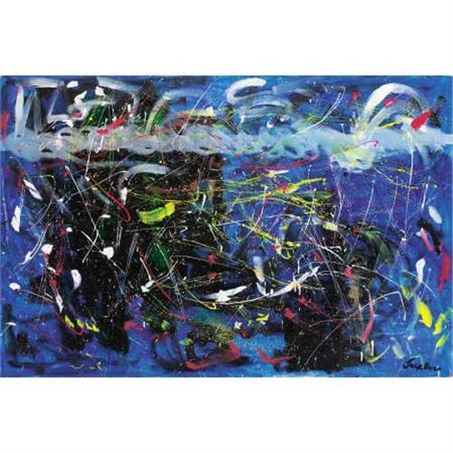 Nous vous proposons une reproduction artisanale sur toile du célèbre tableau 'Astrazione' de Jack Bush, provenant du Musée de la Reproduction.