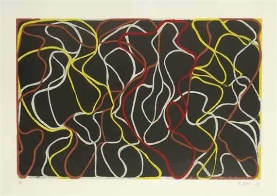Nous vous proposons une reproduction artisanale sur toile du célèbre tableau 'Au-delà des aigles seulement 2' de Brice Marden, provenant du Musée de la Reproduction.