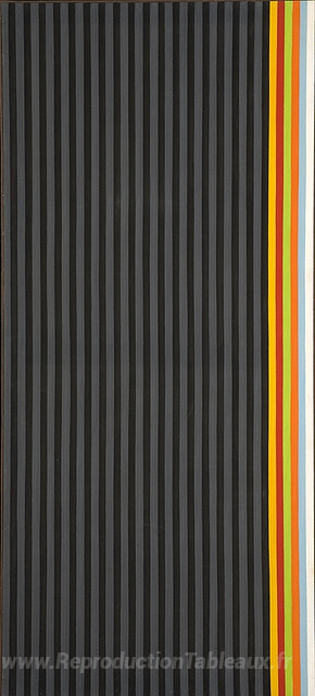 Nous vous proposons une reproduction artisanale sur toile du célèbre tableau 'Bâton de réglisse' de Gene Davis, provenant du Musée de la Reproduction.