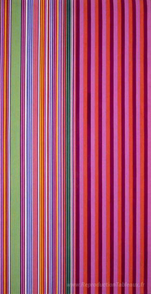 Nous vous proposons une reproduction artisanale sur toile du célèbre tableau 'Baron Rouge' de Gene Davis, provenant du Musée de la Reproduction.
