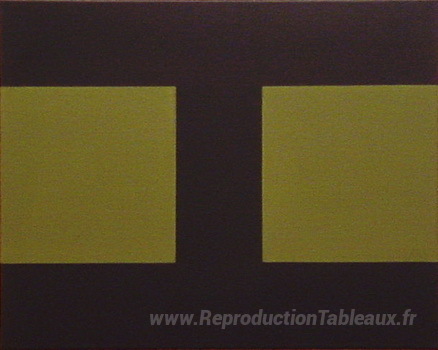 Nous vous proposons une reproduction artisanale sur toile du célèbre tableau 'Bases sur la composition LX (Bozen)' de Helmut Federle, provenant du Musée de la Reproduction.