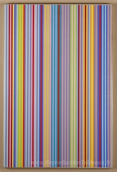 Nous vous proposons une reproduction artisanale sur toile du célèbre tableau 'Bataille pour les adultes' de Gene Davis, provenant du Musée de la Reproduction.