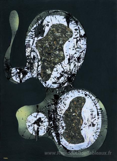 Nous vous proposons une reproduction artisanale sur toile du célèbre tableau 'Biostruttura' de Florin Maxa, provenant du Musée de la Reproduction.