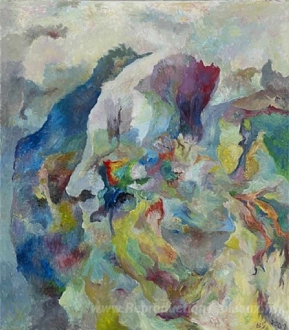 Nous vous proposons une reproduction artisanale sur toile du célèbre tableau 'Blauer Vogelzug' de Bernard Schultze, provenant du Musée de la Reproduction.