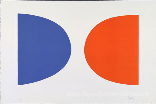 Nous vous proposons une reproduction artisanale sur toile du célèbre tableau 'Bleu et orange de la suite de vingt-sept lithographies de couleu' de Ellsworth Kelly, provenant du Musée de la Reproduction.