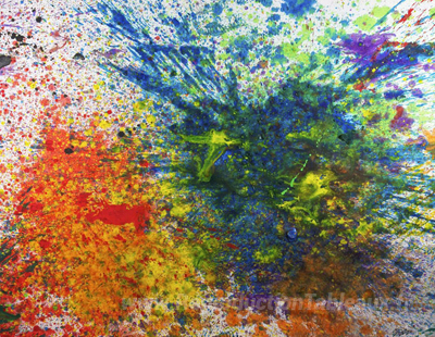 Nous vous proposons une reproduction artisanale sur toile du célèbre tableau 'Capri Certosa 4' de Shozo Shimamoto, provenant du Musée de la Reproduction.