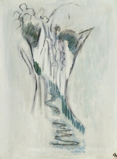 Nous vous proposons une reproduction artisanale sur toile du célèbre tableau 'Cascade (Eau rochers coulant entre)' de Pierre Tal-Coat, provenant du Musée de la Reproduction.