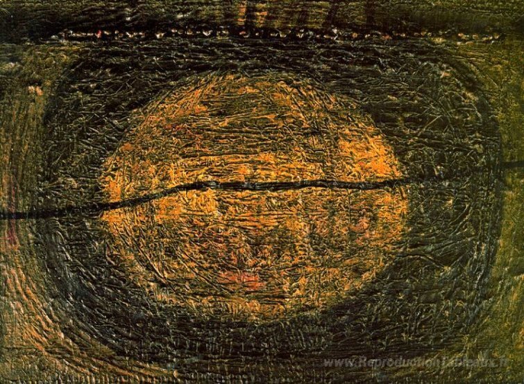 Nous vous proposons une reproduction artisanale sur toile du célèbre tableau 'Cercle doré' de Modest Cuixart, provenant du Musée de la Reproduction.
