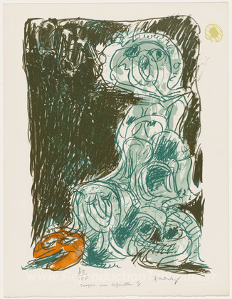 Nous vous proposons une reproduction artisanale sur toile du célèbre tableau 'Chance et sa mère (Le Hasard et Sa Mère) du crayon de portefeuil' de Pierre Alechinsky, provenant du Musée de la Reproduction.