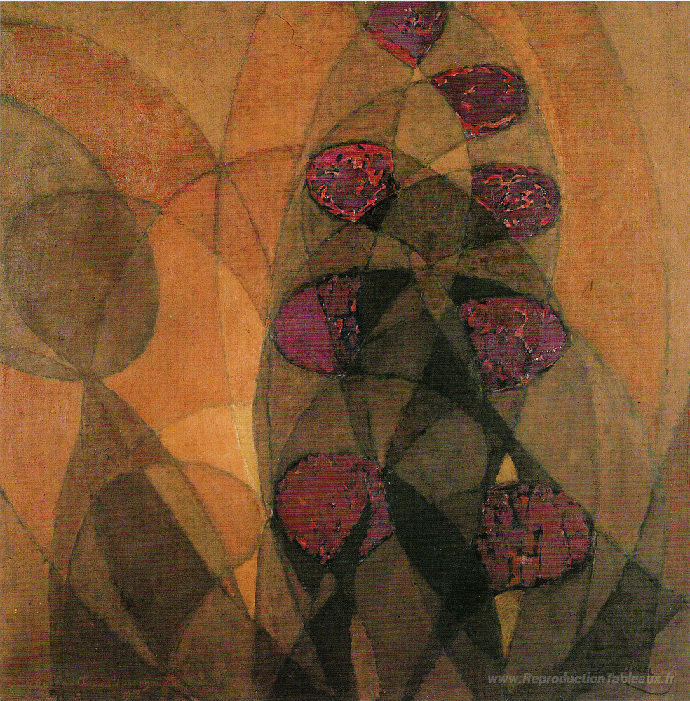 Nous vous proposons une reproduction artisanale sur toile du célèbre tableau 'Chromatiques chaudes' de Frantisek Kupka, provenant du Musée de la Reproduction.