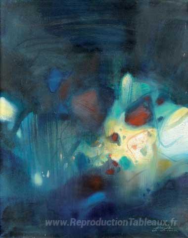 Nous vous proposons une reproduction artisanale sur toile du célèbre tableau '?clair d'obscurité' de Chu Teh-Chun, provenant du Musée de la Reproduction.