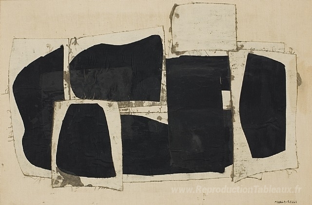 Nous vous proposons une reproduction artisanale sur toile du célèbre tableau 'Collage sans titre' de Conrad Marca-Relli, provenant du Musée de la Reproduction.
