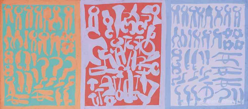 Nous vous proposons une reproduction artisanale sur toile du célèbre tableau 'Colons' de Carla Accardi, provenant du Musée de la Reproduction.