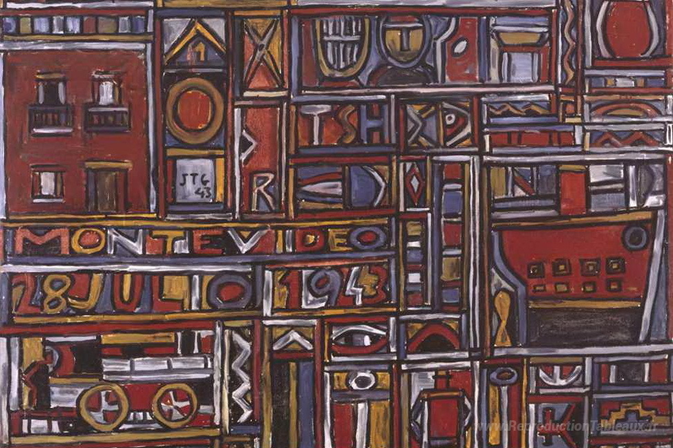 Nous vous proposons une reproduction artisanale sur toile du célèbre tableau 'Composition constructive' de Joaquin Torres Garcia, provenant du Musée de la Reproduction.