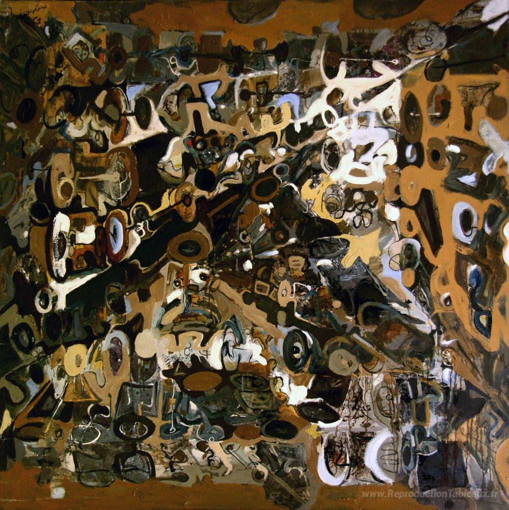 Nous vous proposons une reproduction artisanale sur toile du célèbre tableau 'Composition modulaire III' de Romul Nutiu, provenant du Musée de la Reproduction.