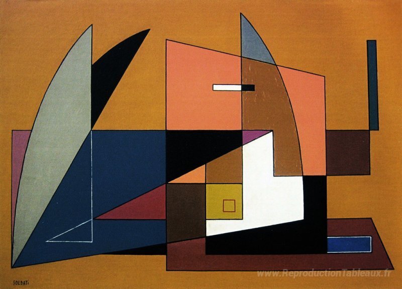 Nous vous proposons une reproduction artisanale sur toile du célèbre tableau 'Composition' de Atanasio Soldati, provenant du Musée de la Reproduction.