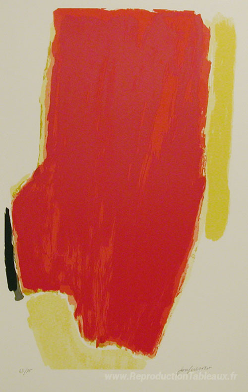 Nous vous proposons une reproduction artisanale sur toile du célèbre tableau 'Composition rouge' de Jose Guerrero, provenant du Musée de la Reproduction.