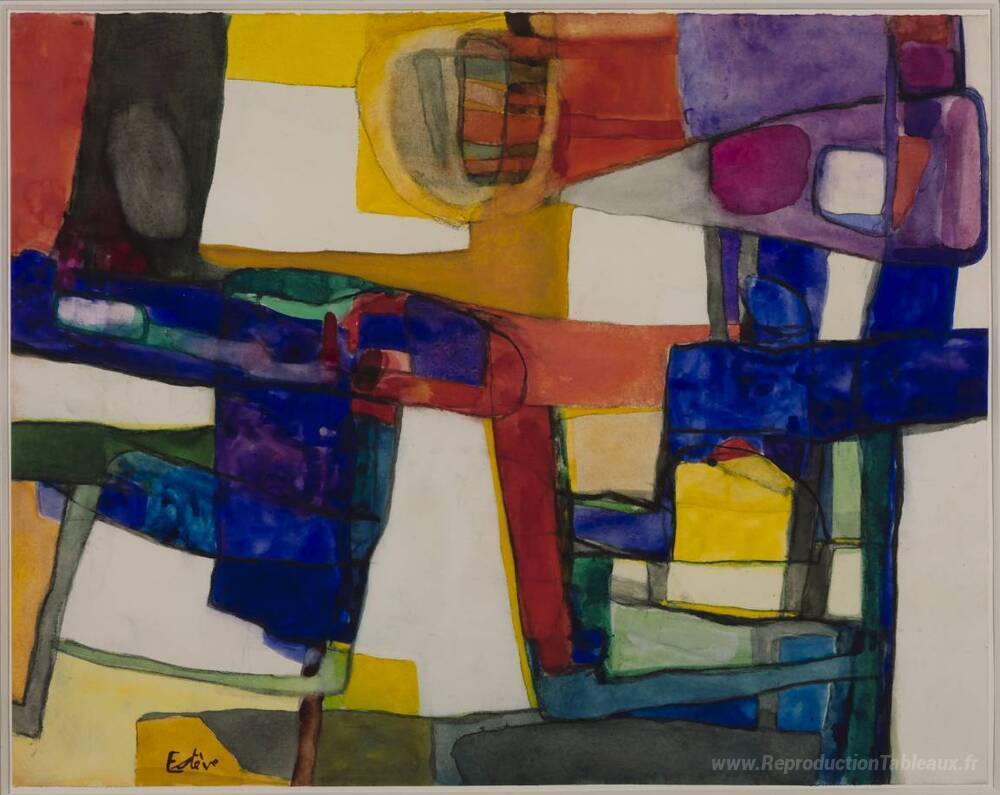 Nous vous proposons une reproduction artisanale sur toile du célèbre tableau 'Composizione 166' de Maurice Esteve, provenant du Musée de la Reproduction.