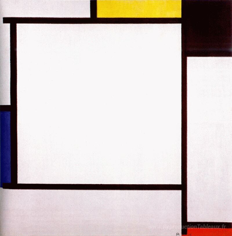Nous vous proposons une reproduction artisanale sur toile du célèbre tableau 'Composizione 2' de Piet Mondrian, provenant du Musée de la Reproduction.