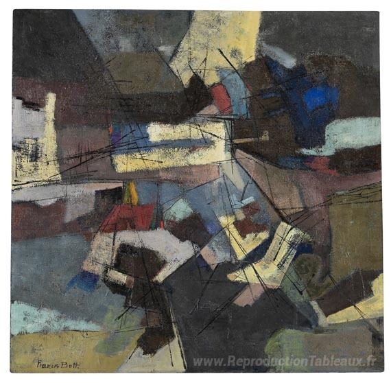 Nous vous proposons une reproduction artisanale sur toile du célèbre tableau 'Composizione' de Francis Bott, provenant du Musée de la Reproduction.