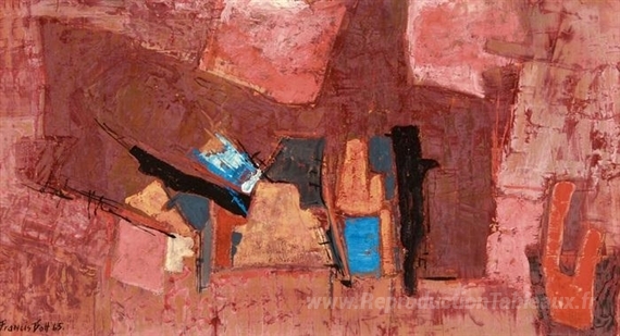 Nous vous proposons une reproduction artisanale sur toile du célèbre tableau 'Composizione' de Francis Bott, provenant du Musée de la Reproduction.