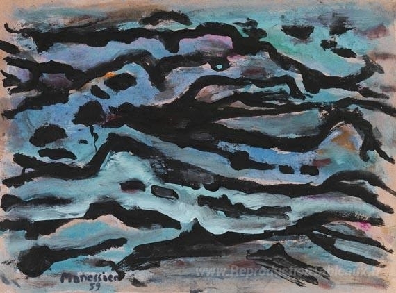 Nous vous proposons une reproduction artisanale sur toile du célèbre tableau 'Composizione' de Alfred Manessier, provenant du Musée de la Reproduction.
