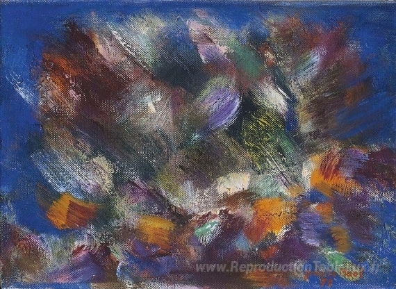 Nous vous proposons une reproduction artisanale sur toile du célèbre tableau 'Composizione' de Jean Le Moal, provenant du Musée de la Reproduction.
