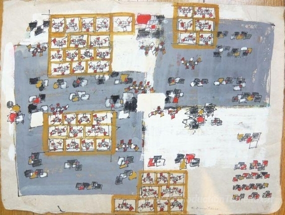 Nous vous proposons une reproduction artisanale sur toile du célèbre tableau 'Composizione' de Natalia Dumitresco, provenant du Musée de la Reproduction.
