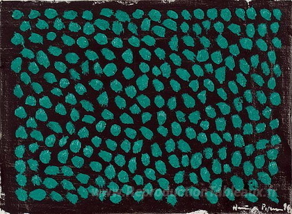 Nous vous proposons une reproduction artisanale sur toile du célèbre tableau 'Coms fls verdes sobre negre 2' de Joan Hernandez Pijuan, provenant du Musée de la Reproduction.