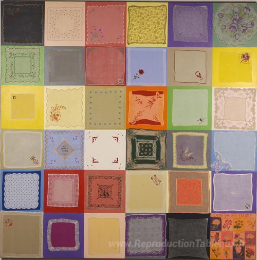 Nous vous proposons une reproduction artisanale sur toile du célèbre tableau 'Connexion' de Miriam Schapiro, provenant du Musée de la Reproduction.