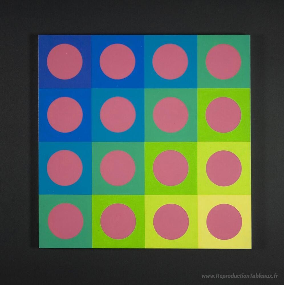 Nous vous proposons une reproduction artisanale sur toile du célèbre tableau 'Contrasti simultanei' de Mario Ballocco, provenant du Musée de la Reproduction.