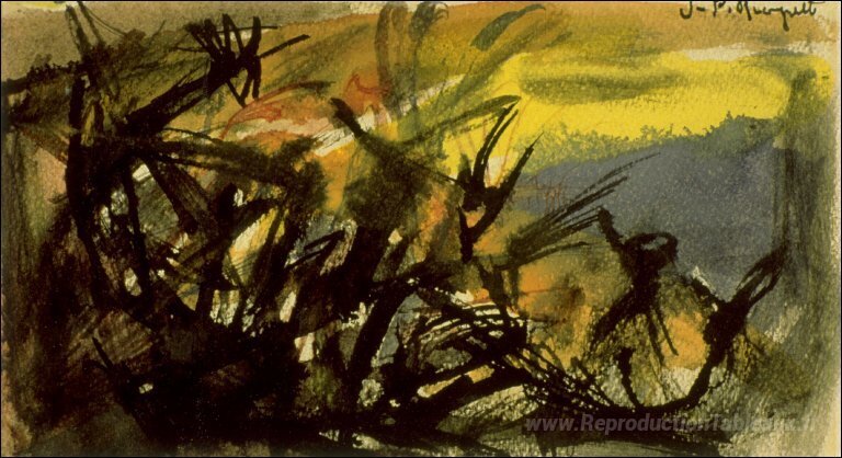 Nous vous proposons une reproduction artisanale sur toile du célèbre tableau 'Conversazione' de Jean-Paul Riopelle, provenant du Musée de la Reproduction.