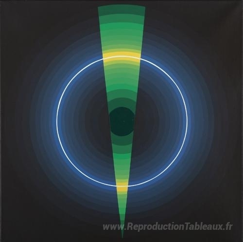 Nous vous proposons une reproduction artisanale sur toile du célèbre tableau 'Couleur lumière' de Horacio Garcia-Rossi, provenant du Musée de la Reproduction.
