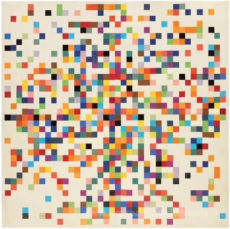 Nous vous proposons une reproduction artisanale sur toile du célèbre tableau 'Couleurs de spectre disposées par hasard II' de Ellsworth Kelly, provenant du Musée de la Reproduction.